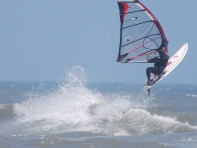 Epic day of wave riding and jumping today at Assateague, one of the best ever. Sailed a 5.0 downhauled to the max, and rode the 91 ltr. Waves started out kinda small, but the steady strong wind pushed in a decent wind swell, maybe 4-5 foot. Hit the water about 10, and the sailed till about 3.30. The wind was SSW, and steady all day. Basically mostly to partly sunny all day. Storms didn't move in until i was unrigged and on my way up rt 113. It just all lined up for me today, a day I'll be thinking about for a long time.