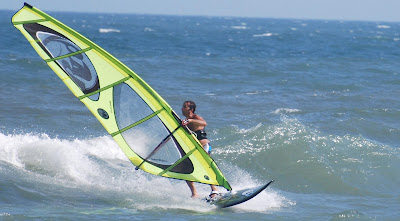 So yeah, I scored an awesome afternoon of wavesailing on Monday. Forecast was for 4 foot period swell with a 10 second period, and solid SW 10-15 thermals.. Conditions not to be missed. So we left the house after lunch, and i was on the beach rigging around 1pm. Sailed till close to 7pm. I'm telling you, the standup paddling has kept me in solid shape, and despite the fact that the wind has been very fickle this summer, I feel like I'm in great sailing shape. Bring on the Hatteras Wave Jam! I'm ready!!